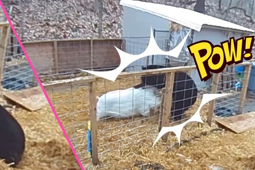 Un ours se fait calmer par deux cochons