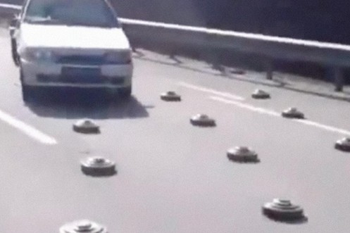 En Ukraine, les voitures slaloment entre les mines
