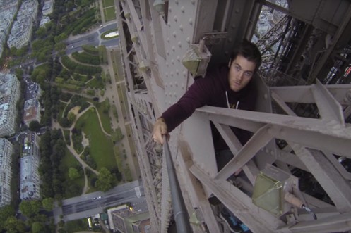 Höhenangst? Nicht dieser junge Mann – ungesichert klettert er auf den Eiffelturm!