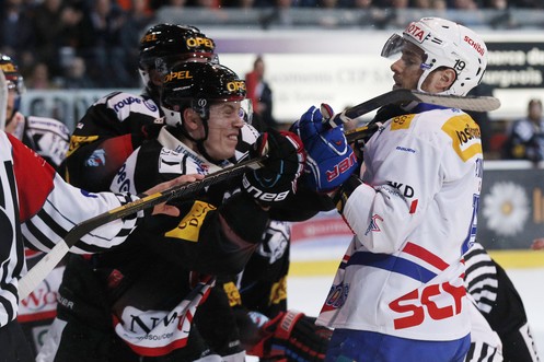 Hier trifft Zugs Captain Schnyder, ohne den Puck auch nur berührt zu haben