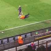 Dieser Bodycheck am gegnerischen Trainer bringt die Fans zum ausrasten, als ob sie gerade Meister geworden wären!