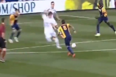 Heutige Lektion: Wie man mit der rechten Hacke den Ball über sich selber lupft und mit dem linken Aussenrist aus unmöglichem Winkel den Goalie überlobt