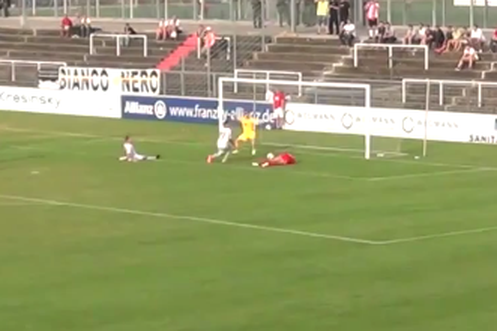 30.07.2000: Nur GC-Milchbubi Peter Jehle steht noch zwischen FCB-Legende Massimo Ceccaroni und seinem allerersten Tor