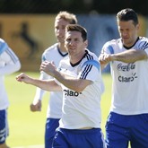 Hier macht Argentiniens Lavezzi seinen Trainer nass und Nigerias Onazi bricht seinem Mitspieler den Arm