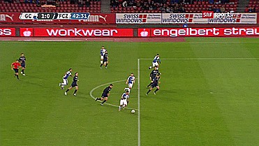 GC versucht sich irgendwie in den Strafraum zu spielen. Momentan schaffen sie das nicht. Die schlechteste Abwehr der Liga ist doch nicht so schlecht, oder der gefährlichste Sturm einfach zu wenig gefährlich.