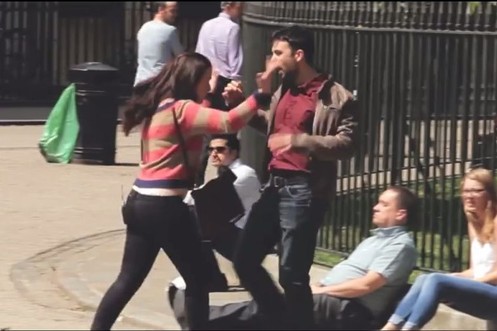 Da schlägt eine Frau vor aller Augen einen Mann. Und was sagen die Leute dazu?