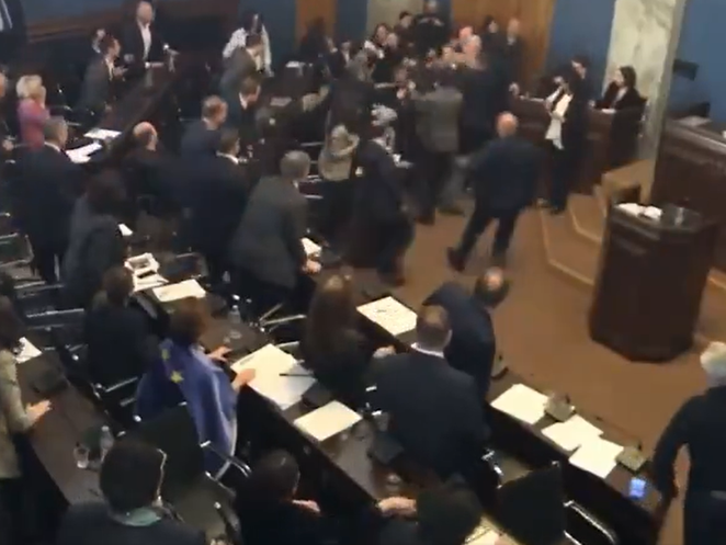 Diskussion artet aus: Schlägerei im georgischen Parlament – Tausende demonstrieren