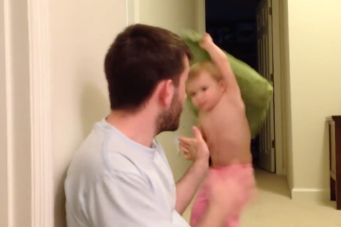 Diese Schneeball-Schlacht zwischen Vater und Sohn ist ja so unfair! Und wir würden niemals darüber lachen! Niemals!