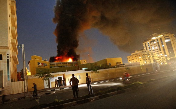 Augenzeugen zufolge schlugen zeitweise auch Flammen aus dem Gebäude im Westen von Gaza-Stadt. Niemand bekannte sich zunächst zu der Tat.