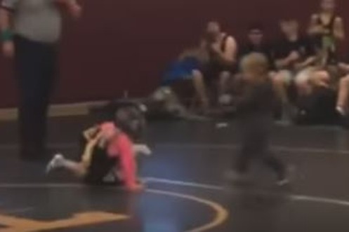 Knirps (2) verteidigt angegriffene Schwester (4) – und stürmt dabei einen Schul-Ringkampf