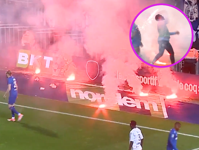 Hier gehen spanische und russische Hooligans mit Feuerwerk aufeinander los