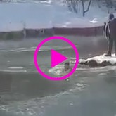 Mann rettet Hund aus zugefrorenem See in der Ukraine