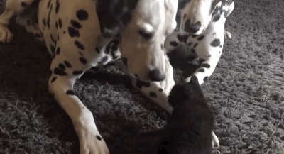 Kätzchen gegen Pitbull – es kann nur einen Sieger geben