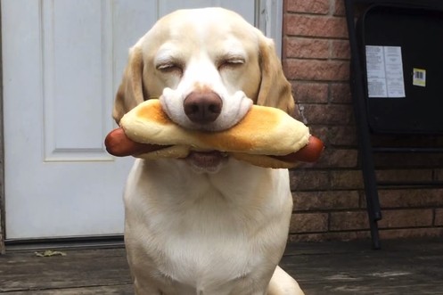 Du weisst grad nicht, wohin mit deinem Hot-Dog? Sid, der Beagle, hält ihn gerne für dich