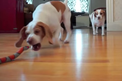 Und nun: Hunde, die sich vor schwebenden Würstchen fürchten (und sie dann doch fressen)