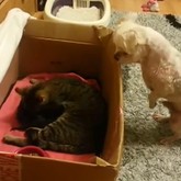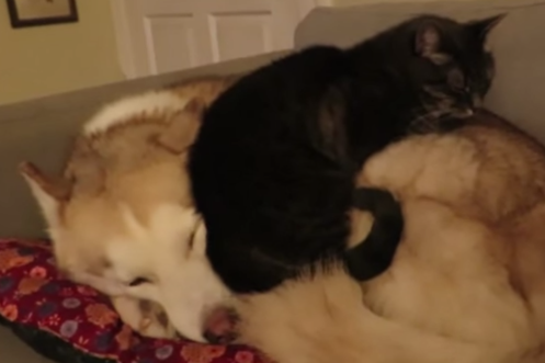 Und nun eine Katze, die einem Hund eine Kopfmassage verpasst