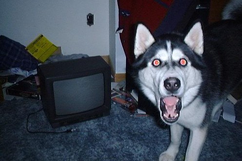 Ein Husky, der noch weniger Bock hat das warme Haus zu verlassen, als Sie