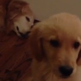 So herzig, wie der Welpe seinen grossen Freund tröstet, weil der gerade einen Albtraum hat