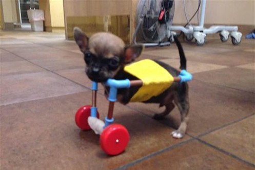 Das Wunder-Hündchen «Turbo» hat zwar keine Vorderpfoten, dafür rollt es auf Spielzeug-Rädern durchs Leben