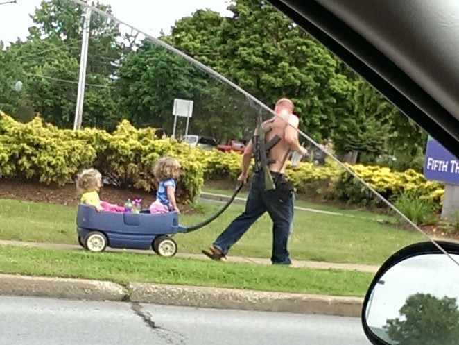 Schönes Foto, Leute, aber hinter Euch stopft grad einer ein Baby in eine Kanone!