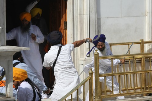 Zurück ins Mittelalter: Sikhs gehen vor Tempel mit Säbeln aufeinander los