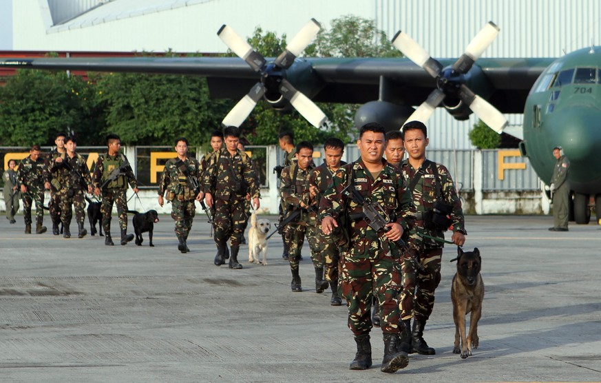 Philippinische Soldaten auf dem Weg zu einem Einsatz. Bei erneuten Kämpfen zwischen der Armee und Islamisten sind mehrere Menschen getötet worden.Bild: EPA/ARMED FORCES OF THE PHILIPPINES