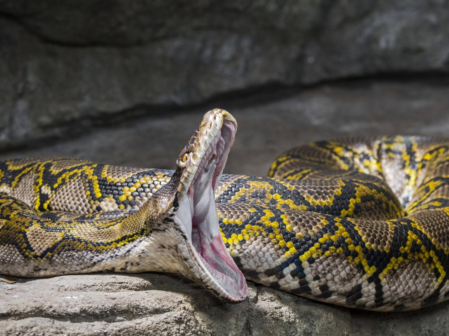 Die Netzpython gilt als aggressiv. Sie verschlingt alles, was sie erdrücken kann. Normalerweise erwürgen sie ihre Opfer, bevor sie sie herunterschlingen. Dass eine Netzpython tatsächlich Menschen frisst, ist eher selten. Normalerweise ernähren sich die Tiere von Vögeln und kleineren Säugetieren wie Ratten oder auch kleinen Affen. (nib)