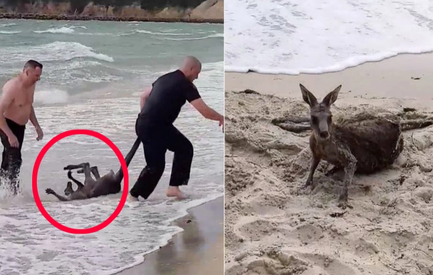 Mieser Beach Day: Känguru hüpft ins Meer – und Polizisten ziehen es wieder raus