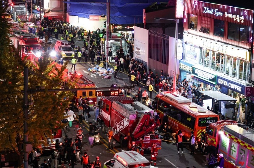 Online-Videos, die in sozialen Medien kursierten, zeigten Dutzende Personen, die am Strassenrand liegend mit blauen Plastikplanen bedeckt waren. Insgesamt hätten die Einsatzkräfte versucht, mehr als 50 Menschen wiederzubeleben, berichtete die nationale Nachrichtenagentur Yonhap. Demnach waren mehr als 140 Rettungsfahrzeuge im Einsatz. Das Gebiet wurde weitläufig abgesperrt.