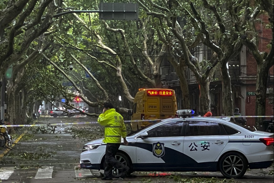 Mit heftigem Regen und starken Böen hat Taifun «Bebinca» die chinesische Millionenstadt Shanghai lahmgelegt. Die Behörden stoppten den Fernzug- und Fährverkehr, sagten am Vormittag alle Flüge an den internationalen Flughäfen ab und sperrten Autobahnzufahrten, wie das chinesische Staatsfernsehen berichtete.