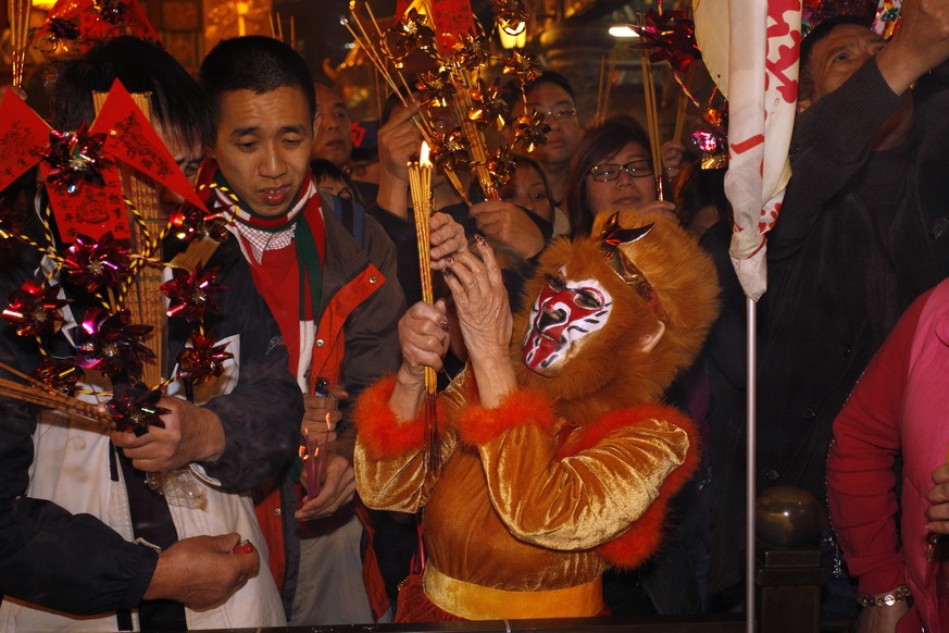 Die Chinesen begrüssen das Jahr des Affen. Nach dem traditionellen Mondkalender feierte das Milliardenvolk am Sonntag um Mitternacht (Ortszeit) ins neue Jahr. Da der Affe als energiegeladen, sprunghaft, aber auch gewitzt gilt, erwarten Wahrsager ein lebhaftes Jahr.