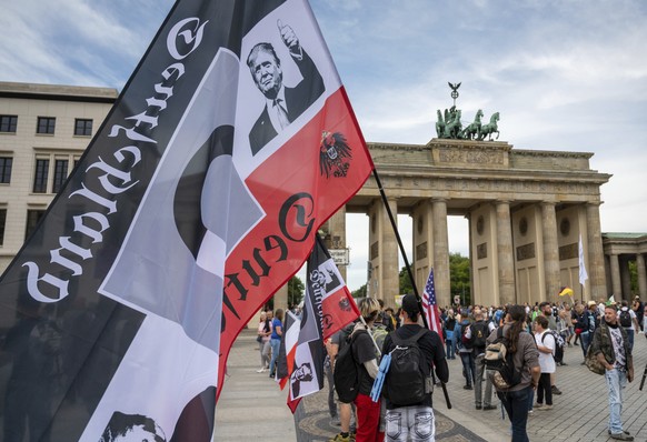 Da vorne ist Mahatma Gandhi. Auf der Berliner Prachtstrasse Unter den Linden trägt ihn ein Mann auf dem Fahrrad spazieren. Der indische Freiheitskämpfer ist auf ein Schwarz-weiss-Foto gedruckt, das eingeklemmt ist in einem schmalen Doppelhalter. «Frieden Freiheit Liebe» steht darunter. Wenige Meter weiter trägt einer eine breite schwarz-weiss-rote Flagge spazieren, das Erkennungssymbol der Reichsbürger.