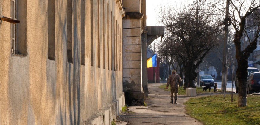 Wir fahren weiter nach Mukachewo, einer Stadt mit über 85'000 Einwohnern. Ältere Männer laufen in den Strassen umher, ihr Militärtenue sitzt mehr schlecht als Recht. Man sieht ihnen an, dass sie erst kürzlich eingezogen wurden.