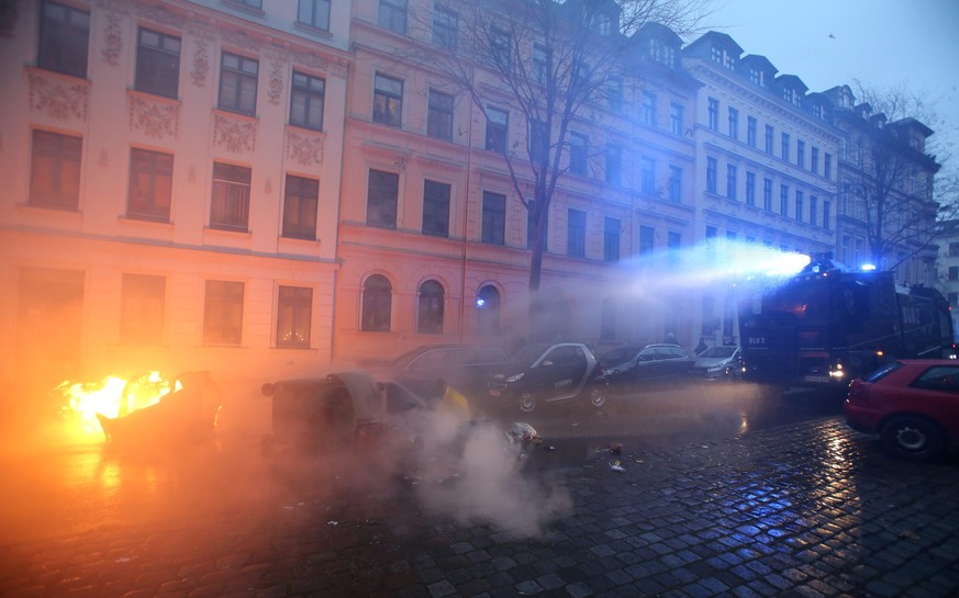 Schon am frühen Morgen hatten Unbekannte mehrere Brände gelegt. In den Stadtteilen Südvorstadt und Connewitz brannten laut Polizei an mehreren Stellen Autoreifen sowie Container. Ausserdem sei auf einem Fabrikdach ein Lagerfeuer entzündet worden. (dsc/sda/dpa)