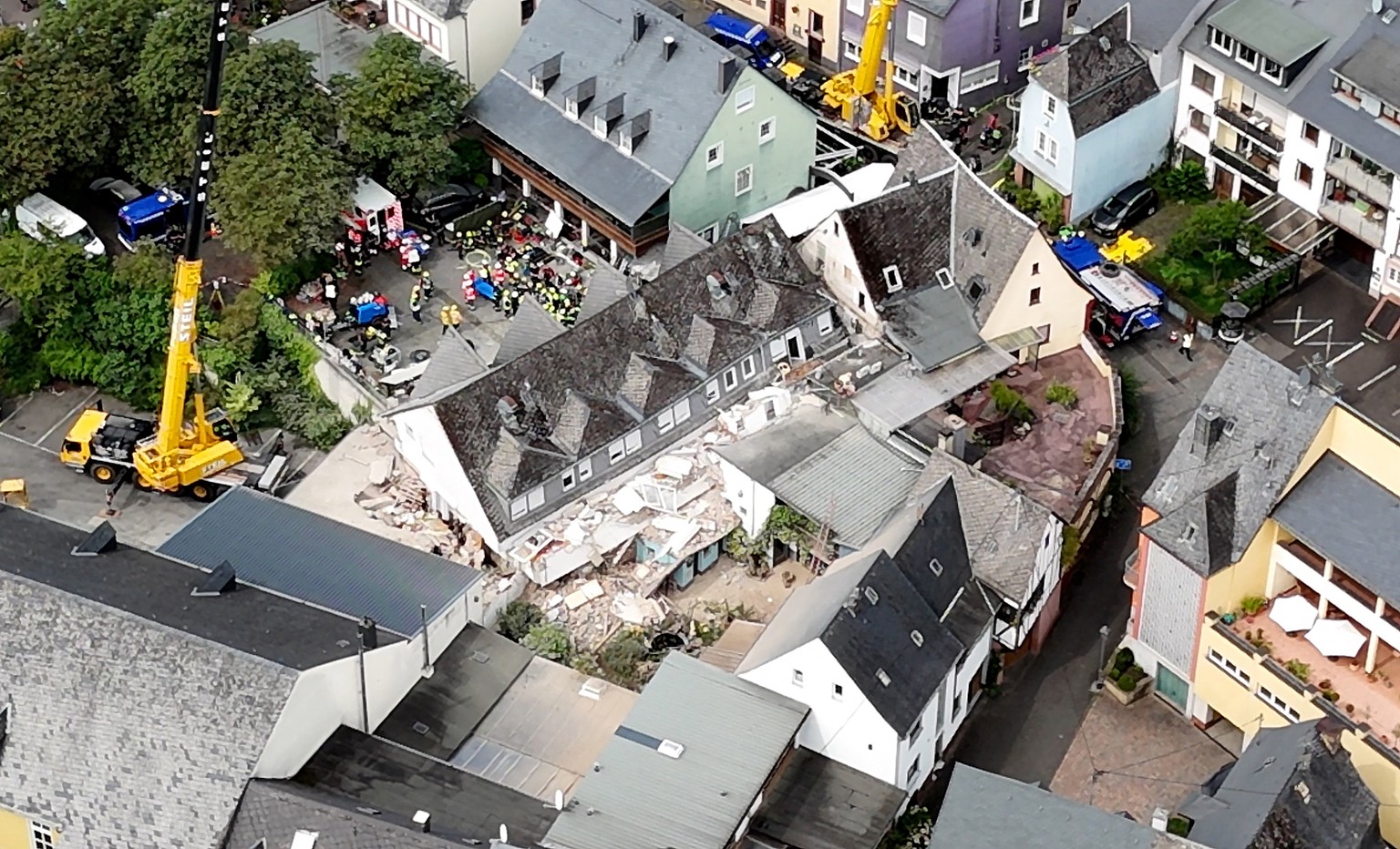 Es ist ein schlimmer Anblick. Das kleine Hotel in Kröv an der Mosel im Westen Deutschlands ist in sich zusammengesackt. Eine Etage ist verschwunden, Fenster, Balken und Giebel sind verschoben. Etliche Urlauber hielten sich zum Zeitpunkt des Unglücks am späten Dienstagabend in dem Hotel auf. Nach einer stundenlangen Rettungsaktion dann die traurige Nachricht: Eine Frau und ein Mann sind in den Trümmern getötet worden.