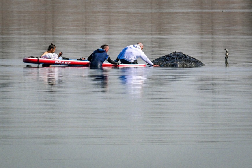 Alle Experten gehen davon aus, dass der Wal stark geschwächt und schwer krank ist. Ein Walexperte und zwei Tiermedizinerinnen nahmen am Donnerstag vorsichtig Kontakt zu ihm auf und stellten fest, dass er auf Ansprache reagiert, wie die Sprecherin der Rettungsaktion sagte. Sein Blasrohr sei intakt, an ihm seien keine Entzündungszeichen zu erkennen. Aufregung zeige der Meeressäuger nicht.