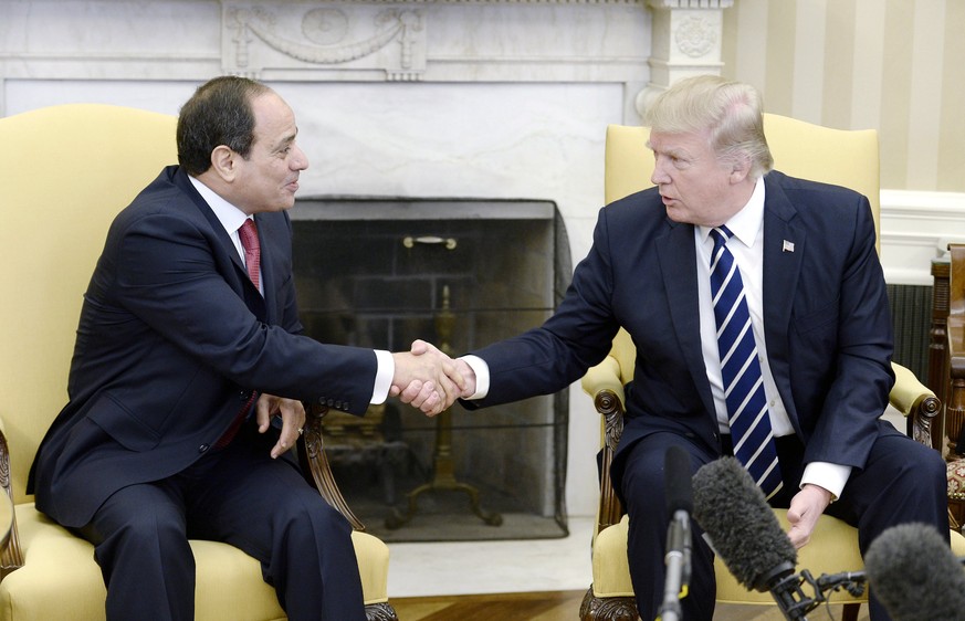 Die beiden Staatsoberhäupter sassen im Oval Office, dem Amtszimmer des US-Präsidenten. Trump gab al-Sisi zwei Mal die Hand. Al-Sisi verlieh seiner Freude darüber Ausdruck, dass dies der erste Besuch eines ägyptischen Staatschefs im Weissen Haus seit acht Jahren sei. Al-Sisi war der erste Staatschef gewesen, der Trump zum Sieg gratuliert hatte. (sda/dpa/afp)