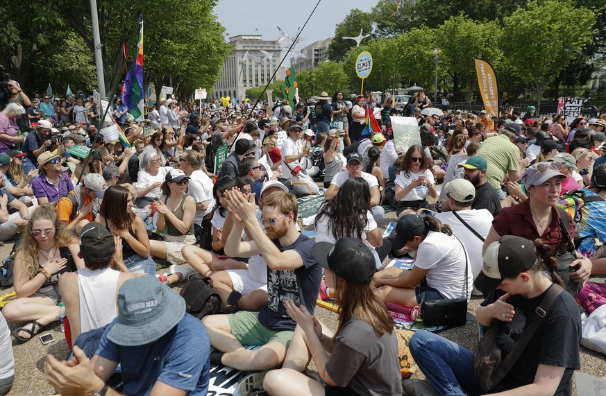 Mehrere tausend Menschen haben am 100. Amtstag von US-Präsident Donald Trump in Washington gegen die Energiepolitik der Regierung protestiert. Die Demonstranten zogen am Samstag vom Kapitol bis zum Weissen Haus und skandierten Forderungen nach mehr Klimaschutz.