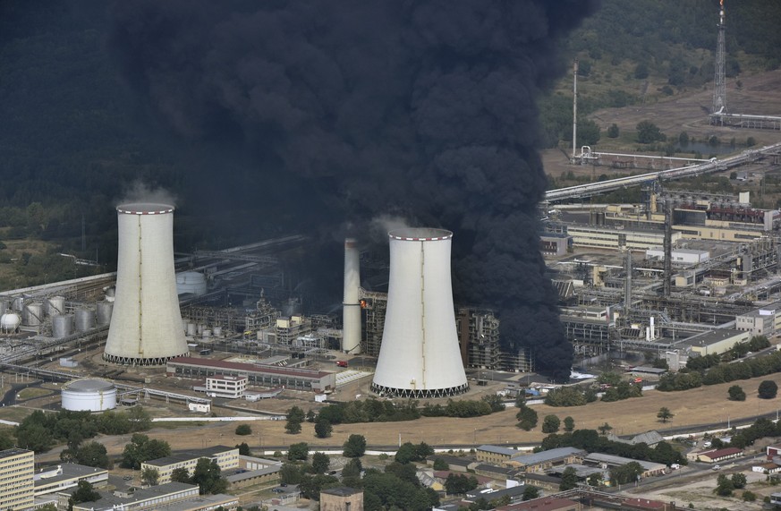 Erst ein Feuerball, dann dicke Rauchschwaden: In einer tschechischen Chemiefabrik am Fusse des Erzgebirges brennt es.
