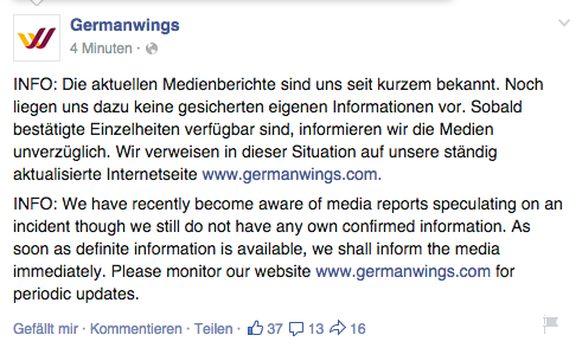 — Germanwings (@germanwings) 24. März 2015Vollständiges Statement von Germanwings
