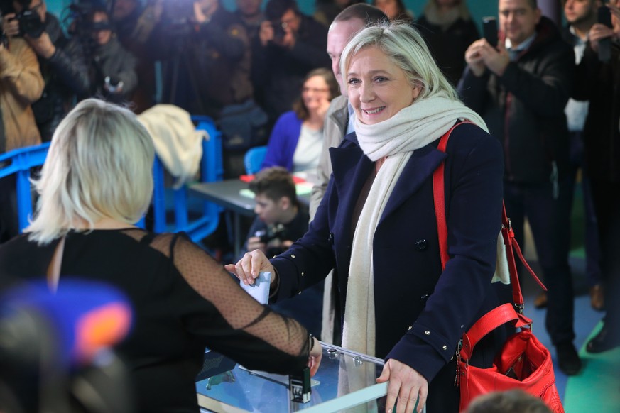 Der FN setzte auf einen Wahlkampf gegen Europa und Ausländer, forderte die Schliessung der Grenzen und mehr innere Sicherheit - mit durchschlagendem Erfolg an den Urnen. (sda/dap/afp/reu)