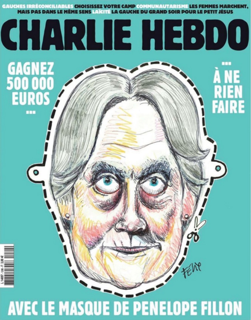 Francois Fillon, französischer Präsidentschaftsanwärter, wird immer mehr in die Enge gedrängt. Hier das neueste Titelblatt der Satirezeitung «Charlie Hebdo». Bild: CHRISTIAN HARTMANN/REUTERS