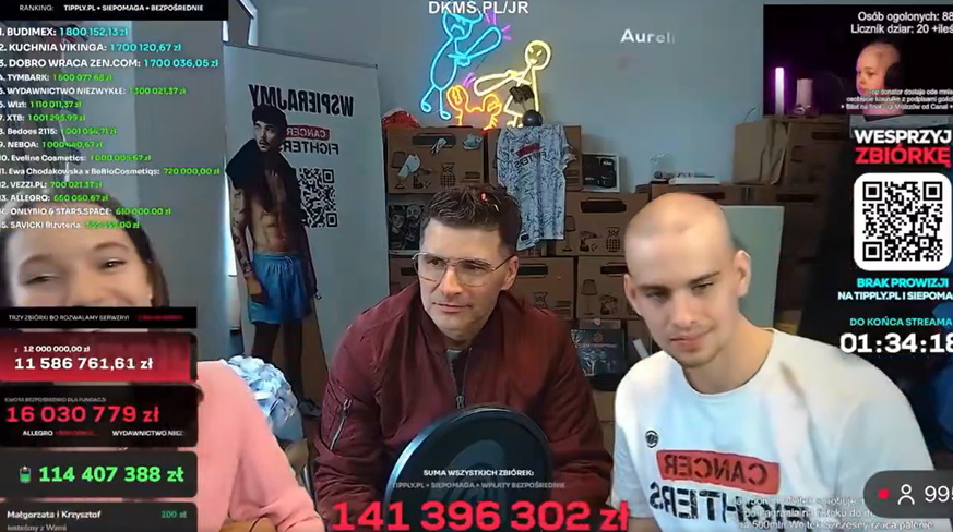 «Es ist toll, wir haben ein Wunder», sagte der Influencer Latwogang, mit bürgerlichem Namen Patryk Garkowski nach dem Ende des neuntägigen Livestreams. Sein ursprüngliches Ziel, Spenden in Höhe von umgerechnet 117'000 Euro zusammenzubekommen, wurde um ein Vielfaches übertroffen.