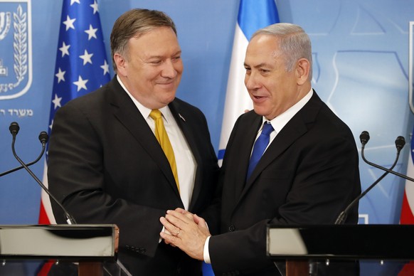 Israel wirft Teheran vor, heimlich weiter am Bau einer Atombombe zu arbeiten. Eine Atombombe in den Händen radikaler Islamisten, besonders des Irans, wäre eine Bedrohung für die ganze Welt, sagte Netanjahu nach dem Gespräch mit Pompeo.