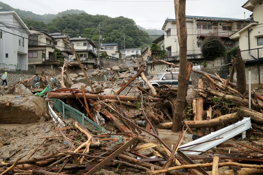 Es ist bereits jetzt die höchste Opferzahl durch Regenfälle in Japan seit mehr als drei Jahrzehnten. Ende vergangener Woche hatten heftige Regenfälle im Westen und Zentrum Japans schwere Überschwemmungen und Erdrutsche verursacht. Viele Einwohner mussten sich auf die Dächer ihrer Häuser retten.