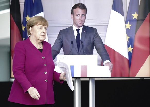 Es habe zu Beginn der Epidemie Mängel und Verzögerungen bei der Reaktion der Europäischen Union gegeben, sagte Macron bei der Pressekonferenz, bei der Merkel in Berlin per Video zugeschaltet war.