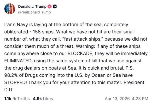 «Sollte sich ein iranisches Schnellangriffsschiff auch nur annähernd unserer Blockade nähern, wird es sofort eliminiert, und zwar mit demselben Tötungssystem, das wir gegen die Drogenhändler auf Booten auf See anwenden», drohte US-Präsident Donald Trump dem Iran erneut auf seiner Plattform Truth Social.