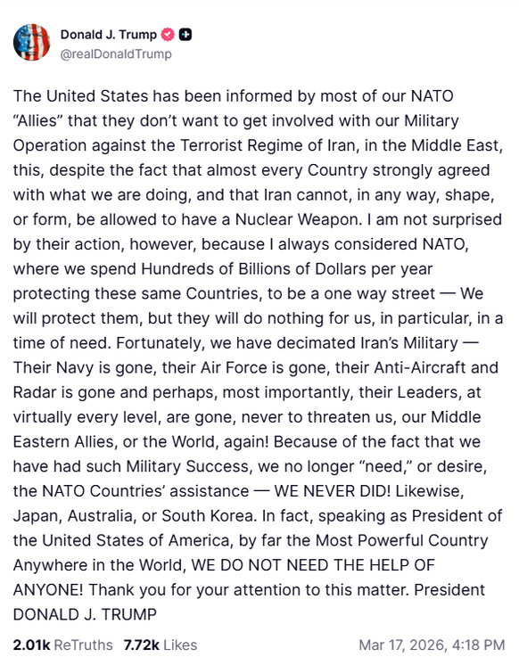US-Präsident Donald Trump schliesst einen Einsatz von Bodentruppen im Iran auch nach einer Warnung aus Teheran vor einem zweiten Vietnam nicht aus. «Nein, ich habe keine Angst davor. Ich habe vor gar nichts Angst», sagte er während eines Treffens mit dem irischen Regierungschef Micheál Martin im Weissen Haus. Ein Reporter hatte den Republikaner damit konfrontiert, dass der Iran gedroht habe, die USA sollten nachlesen, was in Vietnam passiert sei, sollten sie Truppen entsenden.