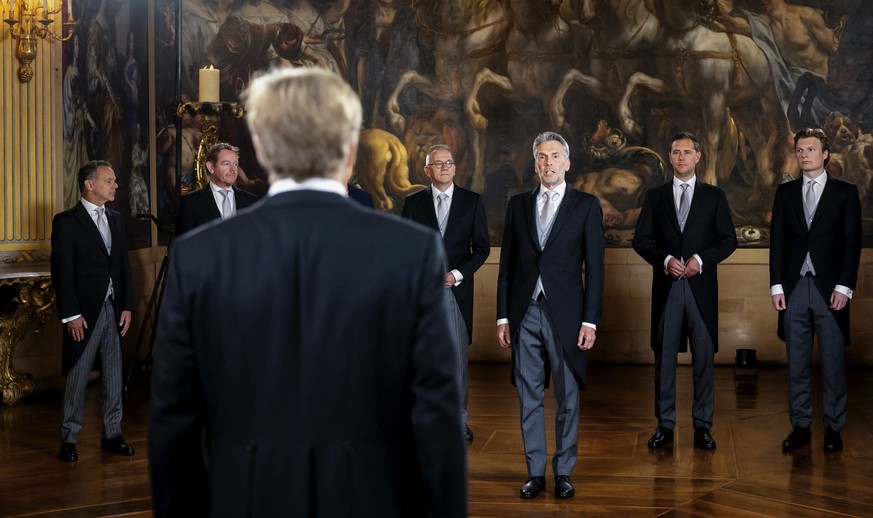 In einer Zeremonie legten die Minister und Staatssekretäre heute im Residenzschloss Huis ten Bosch bei Den Haag vor König Willem-Alexander wahlweise den Eid («so wahr mir Gott, der Allmächtige, helfe») oder ein entsprechendes weltliches Gelöbnis ab.
