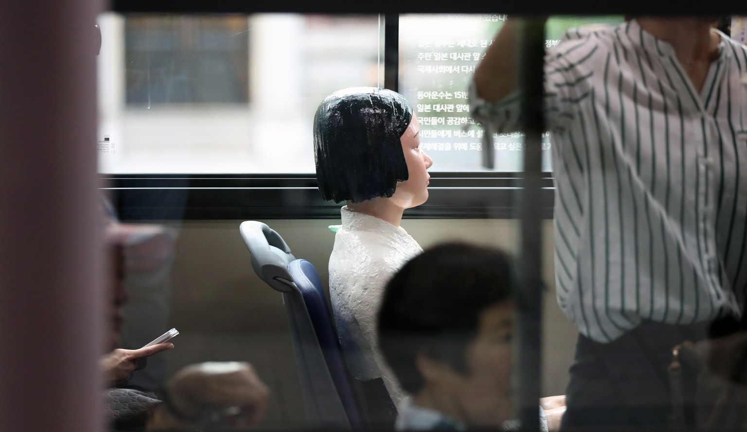 Eine Statue fährt in Seoul Bus und erinnert an 200'000 Sexsklavinnen